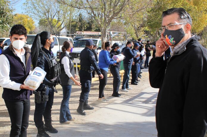 Chihuahua, Chih. – La Secretaría de Seguridad Pública del Estado (SSPE) se sumó a la entrega de víveres como parte de la campaña “Kilos con Valor” que lleva a cabo el Gobierno del Estado, a través de la Subsecretaría de Desarrollo Social, con el fin de recaudar víveres y entregarlos a la comunidad juarense afectada por la contingencia sanitaria COVID-19.