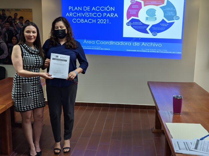 Chihuahua, Chih . – El Colegio de Bachilleres del Estado de Chihuahua (Cobach) continúa realizando acciones para la implementación de su Sistema Institucional de Archivos (SIA), en cumplimiento a la Ley General de Archivos, a fin de garantizar la organización, conservación, disponibilidad, integridad y localización expedita de documentos.