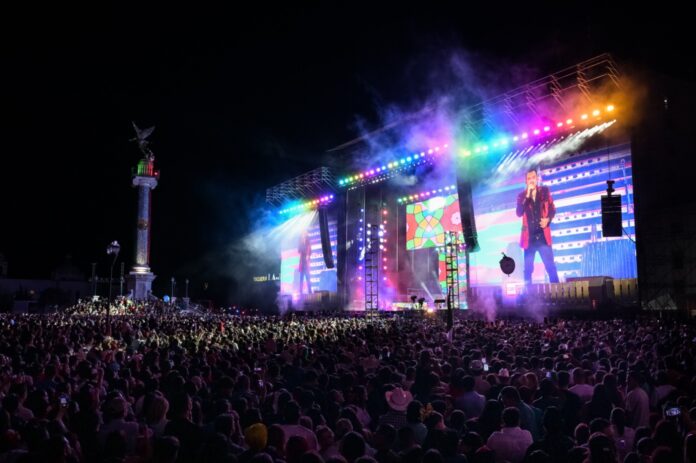 Chihuahua, Chih. (ADN/Staff) – En un emotivo y vibrante espectáculo, el Conjunto Primavera se apoderó del escenario de la Plaza del Ángel en Chihuahua para conmemorar el 214 Aniversario del Inicio de la Lucha por la Independencia de México. Desde las primeras horas de la tarde, cientos de familias chihuahuenses se dieron cita para disfrutar de una noche llena de música, baile y orgullo patrio.
