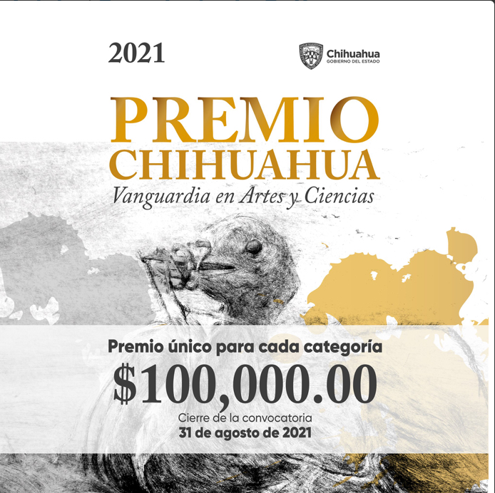 Chihuahua, Chih.- La Secretaría de Cultura reitera la invitación a participar en la convocatoria del Premio Chihuahua 2021 “Vanguardia en Artes y Ciencias”, presentando trabajos en las áreas de Ciencias Tecnológicas, Ciencias Biológicas, Ciencias Sociales, Literatura (ensayo), Periodismo, Artes Visuales (gráfica), Música, y la nueva disciplina para este año: Artes Escénicas, antes de las 16:00 horas del 31 de agosto.