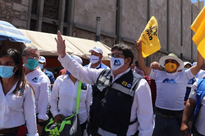 ¨Pensión a los adultos mayores y medicina gratis en los centros comunitarios que se convertirán en centros de salud y de atención a enfermedades como el Covid 19. Javier impulsará la reconstrucción del centro histórico¨, se apreciaba después a través también de las bocinas instaladas en la plaza situada atrás de Catedral y al frente de la antigua presidencia municipal.