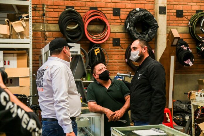 En un recorrido que realizó sobre la avenida Vallarta, El Caballo platicó con varios ciudadanos y empresarios de los locales que continúan abiertos, con quienes se comprometió a trabajar de sol a sol para reactivar la economía, como lo hizo en Parral.