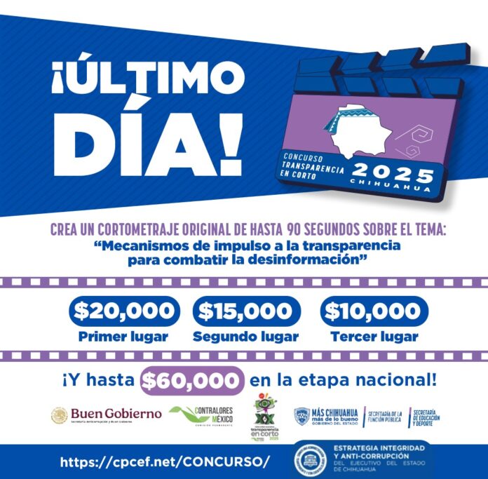 Chihuahua, Chih (ADN/Staff) .- El Concurso Transparencia en Corto 2025 no solo es una plataforma para que los jóvenes muestren su creatividad, sino que también promueve valores fundamentales como la honestidad y la rendición de cuentas. Este espacio busca inspirar a la juventud a transmitir mensajes que resalten la importancia de la transparencia en la vida pública y en la interacción social. Los cortometrajes pueden abordar temas actuales y relevantes, lo que permite a los jóvenes reflexionar sobre su papel en la sociedad.