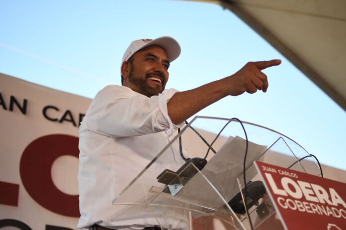 Madera, Chih. (ADN/Martín Orquiz) – Durante el mitin que celebró en Madera el candidato de la coalición Juntos haremos justicia en Chihuahua, Juan Carlos Loera de la Rosa, declaró que recobrará la paz en la entidad a través de un plan integral de programas sociales.