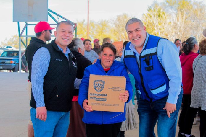 Diputado Ismael Pérez Pavía y alcalde Marcial Márquez entregan apoyos alimenticios a comunidades necesitadas en Rosales, Chih.