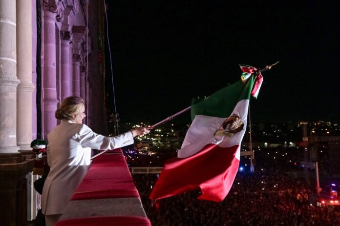 Chihuahua, Chih .- “¡Viva la dignidad de los chihuahuenses! ¡Viva La Paz!, ¡Viva la democracia!”, arengó la gobernadora Maru Campos, al encabezar por cuarta ocasión el tradicional Grito de Independencia, ante las miles de personas congregadas en la Plaza del Ángel.