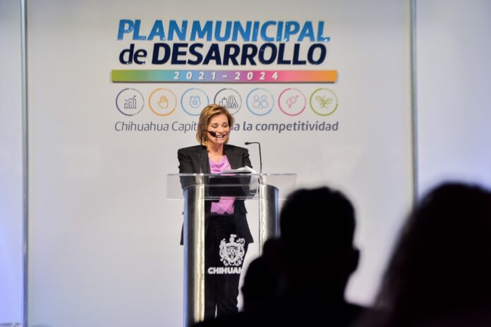 En el marco de la presentación del Plan Municipal de Desarrollo de la ciudad de Chihuahua, la Gobernadora del Estado, acompañó al Alcalde capitalino para refrendar su apoyo en las acciones futuras que se implementarán en la Ciudad de Chihuahua con este Plan Municipal, así como en las inversiones que se realizarán en conjunto en materia de agua potable y en la industria aeroportuaria.