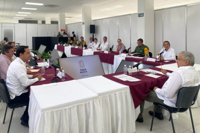 Ciudad de México. – En su visita al sureste del país, el presidente Andrés Manuel López Obrador evaluó el avance del tramo 4 del Tren Maya en Cancún con los gobernadores de Quintana Roo, Carlos Manuel Joaquín González y de Yucatán, Mauricio Vila Dosal.