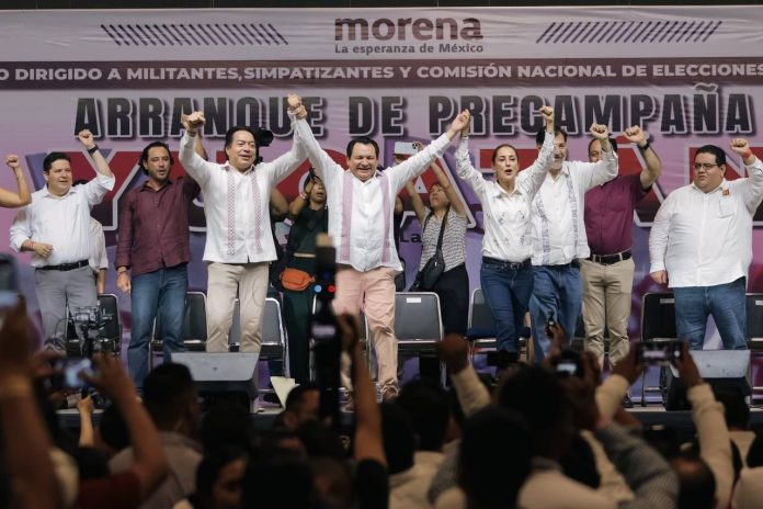 Mérida, Yuc. (ADN/Staff) – En un evento significativo para Yucatán, Claudia Sheinbaum, Coordinadora Nacional de Defensa de la Cuarta Transformación, otorgó a Joaquín Díaz Mena la constancia de registro como precandidato único de Morena a la gubernatura de Yucatán. Sheinbaum, destacando la honestidad y los principios de Díaz Mena, enfatizó la necesidad de trabajar unidos por el bienestar de la península, contrastando su enfoque con el del PAN.