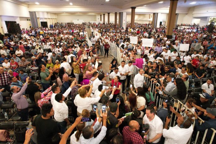 Hermosillo, Son. (ADN/Staff) – En su visita al Expo Fórum de Sonora, Claudia Sheinbaum Pardo fue recibida por más de 10 mil personas de los 72 municipios de la entidad, quienes la arroparon con abrazos, aplausos y porras en su conferencia magistral “Políticas de gobierno en beneficio del pueblo”.