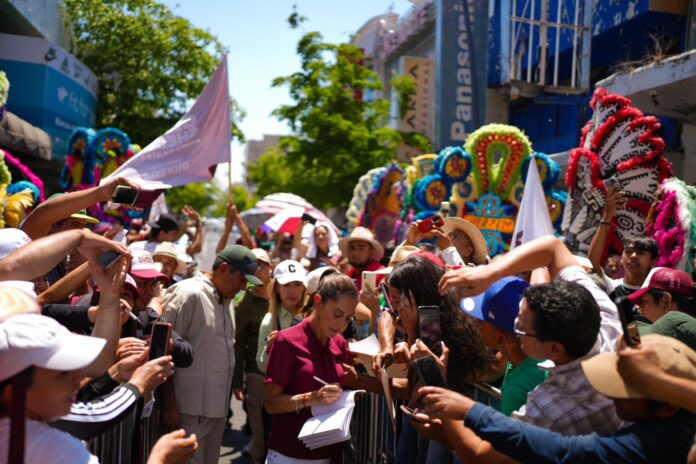 Sahuayo, Michoacán .- Hacer equipo entre la Cuarta Transformación y dejar de creerle a los gobiernos panistas, fue el mensaje de la candidata de la coalición “Sigamos Haciendo Historia” (Morena, PT y PVEM) a la Presidencia de la República, Claudia Sheinbaum Pardo, durante su visita al municipio de Sahuayo, en el estado de Michoacán, donde presentó parte de su proyecto de transformación para garantizar los derechos y el bienestar de las y los mexicanos.