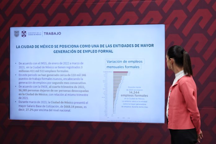Según el secretario del Trabajo y Fomento al Empleo local, José Luis Rodríguez, los datos generados por el Instituto Mexicano del Seguro Social al mes de marzo de 2023 arrojan que 3 millones 411 mil 513 personas cuentan con empleo formal en la Ciudad de México.