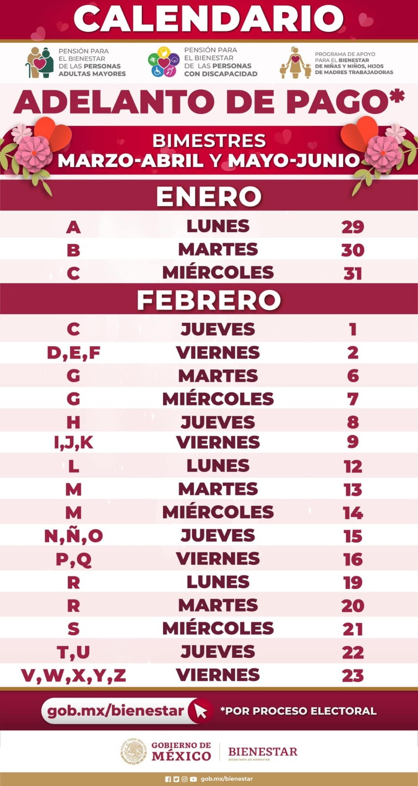 La Secretaria Montiel detalló que la entrega de los montos se realizará entre el 29 de enero y el 23 de febrero, asegurando que cada beneficiario reciba lo correspondiente: 12 mil pesos para los adultos mayores, 6 mil 200 para personas con discapacidad y 3 mil 200 para los inscritos en el programa de madres trabajadoras.
