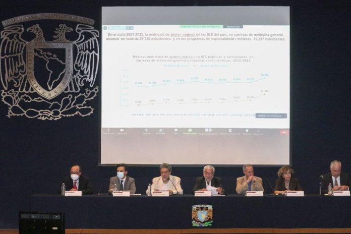 Ante más de 20 rectores y rectoras de universidades, así como de 20 directores y directoras de escuelas de Medicina del país, el funcionario detalló que durante el ciclo 2021-2022, la matrícula total en las instituciones de educación superior, públicas y particulares, en especial en Medicina, alcanzó 153 mil 830 estudiantes, así como más de 42 mil la matrícula en programas de especialidades médicas.