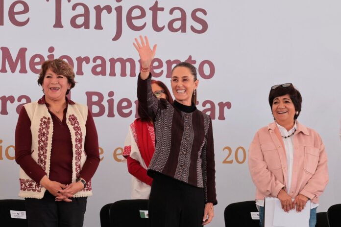 Entrega Claudia Sheinbaum tarjetas del programa de Mejoramiento de Vivienda para el Bienestar en Los Reyes La Paz, Edomex
