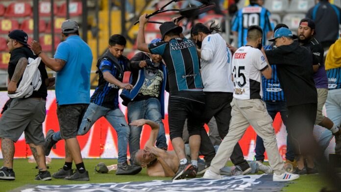 Atlas ganaba 1 a 0 cuando el partido fue suspendido porque las peleas de aficionados se trasladaron a la cancha.
