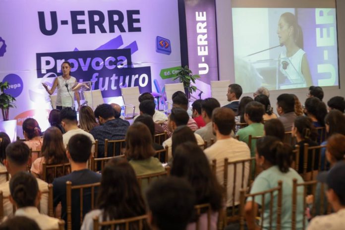 Finalmente, aconsejó a los jóvenes sobre el futuro de México y la necesidad de trabajar en la estima propia, discriminar información falsa y pensar en el bienestar colectivo. Ángel Casán, rector de U-RRE, destacó que la presencia de Sheinbaum enriquece la formación académica de los futuros profesionistas del país.