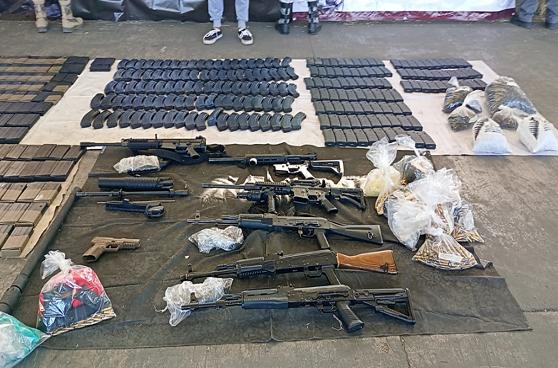 -En Genaro Codina, elementos de GN aseguraron tres armas largas, siete cargadores, 182 cartuchos, diversas dosis de droga, equipo táctico y tres vehículos.