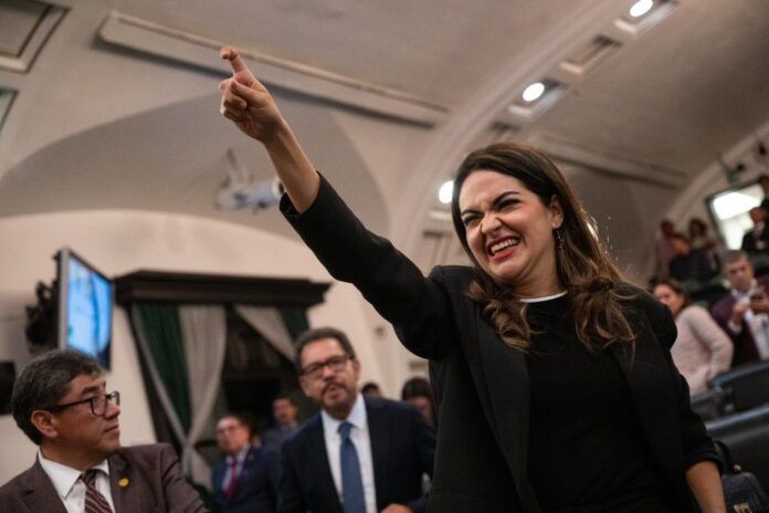 La senadora Andrea Chávez celebra la aprobación en lo general de la Reforma Judicial con 86 votos a favor y 41 en contra.