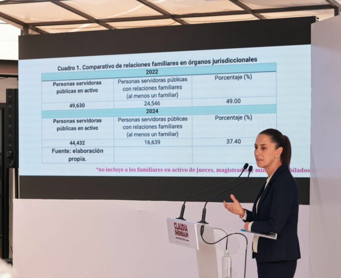 ’’Hay un reconocimiento de ella. Esto viene en su documento, me llamó mucho la atención, está también en la redes sociales: Comparativo de relaciones familiares en órganos jurisdiccionales. La mitad de las personas servidoras públicas con relaciones familiares. Y luego dicen que no hay corrupción en el Poder Judicial. Esto es de su documento. Según ella ha disminuido, ¿verdad? Pero de todas maneras es escandaloso, es un escándalo. Es un reconocimiento de que, en efecto, la manera de entrar al Poder Judicial es por relaciones familiares, no por Carrera Judicial, que es lo que supuestamente defienden tanto. Por eso es tan importante la Reforma al Poder Judicial’’.