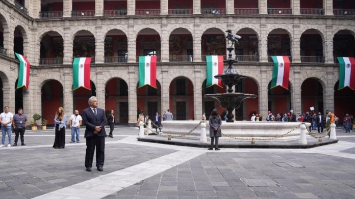 Alrededor de las 7:19 horas (tiempo del centro de México), el presidente López Obrador encabezó en la Plaza de la Constitución la ceremonia de izamiento de bandera a media asta en memoria de víctimas de los sismos de 1985 y 2017.