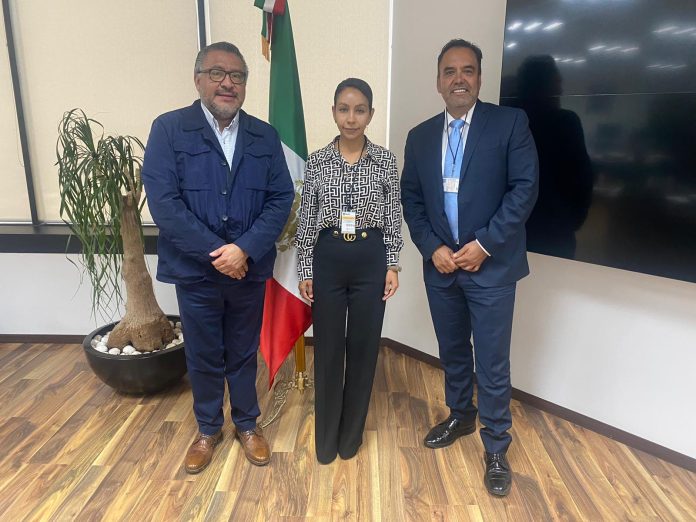 Se reúnen Juan Carlos Loera e Ivonne de la Hoya con Horacio Duarte Olivares, a quien presentaron la propuesta que busca liberar el centro de la población fronteriza del flujo de camiones de carga que cruzan hacia Estados Unidos.