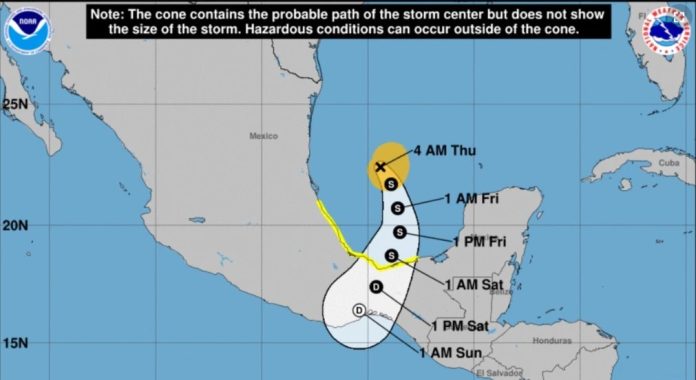 La tormenta se había dirigido despacio al norte antes de que las condiciones meteorológicas cambiaran su rumbo el miércoles por la noche. Se espera que se acerque el viernes por la noche a las costas de Veracruz o Tabasco sin alcanzar fuerza de huracán.