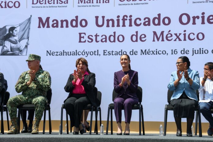 Ciudad de México .– Desde Nezahualcóyotl, en el Estado de México, la Presidenta Claudia Sheinbaum Pardo presentó el Mando Unificado para la Zona Oriente del Estado de México que coordina a policías municipales, estatales, la Guardia Nacional, Fuerzas Armadas y Fiscalías de los 11 municipios de esta zona con el objetivo de alcanzar la paz y que además ya arroja sus primeros resultados como la reducción del 14 por ciento en homicidios dolosos en 110 días de su implementación.
