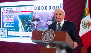 Por festejos patrios, el presidente de México invita a participar en el Gran Sorteo Especial 263 de la Lotería Nacional, con el que se apoyará el financiamiento de la Presa Santa María, que beneficiará a más de 400 mil habitantes.