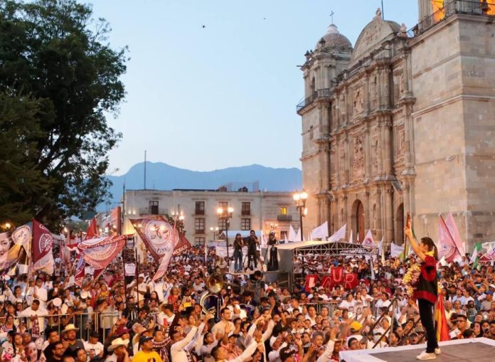 Con motivo del arranque de su recorrido por la República Mexicana,los simpatizantes oaxaqueños mostraron su apoyo al movimiento de la Cuarta Transformación a través de un recorrido por las calles del centro histórico de la entidad con una tradicional Calenda llena de bailes, música y la alegría que caracteriza al pueblo oaxaqueño, dicha caminata culminó en un ritual sagrado en el que Claudia Sheinbaum recibió el bastón de mando del pueblo tatamandón.