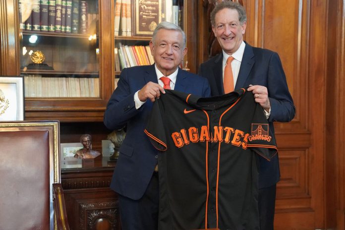 Ciudad de México. – El presidente Andrés Manuel López Obrador recibió este miércoles en Palacio Nacional a los directivos de las Grandes Ligas de Béisbol, de los Padres de San Diego y de los Gigantes de San Francisco.
