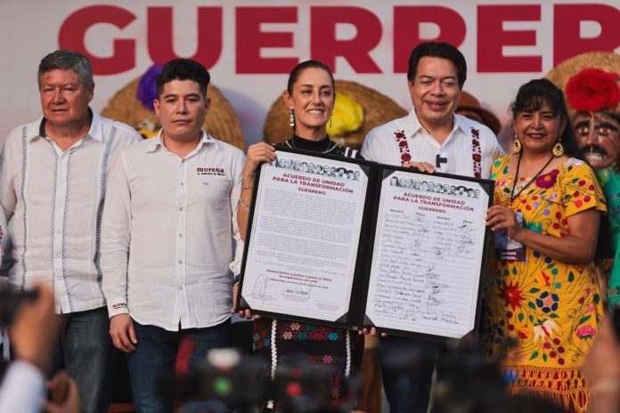 Claudia Sheinbaum, Coordinadora de Defensa de la Transformación, se une con líderes políticos y sociales de Guerrero para ratificar el compromiso con la Cuarta Transformación de la vida pública en México.