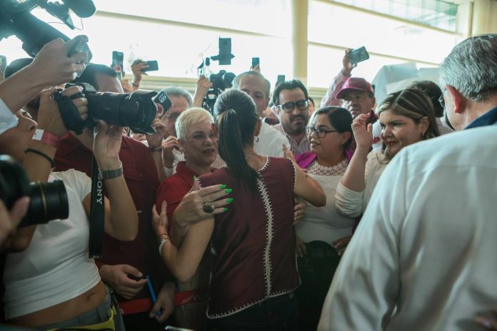 Quienes se dieron cita esta mañana en el aeródromo mostraron su apoyo entre abrazos, sonrisas, así como algunos cárteles en los que se leían mensajes como ‘’Siempre fue Claudia’’o ‘’El pueblo eligió a Claudia’’, así como palabras de aliento al grito de ¡Se ve, se siente, Claudia está presente!