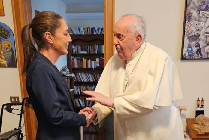 Ciudad del Vaticano (ADN/Staff) – En un evento que destaca por su significado tanto político como espiritual, la Dra. Claudia Sheinbaum Pardo, se reunió este jueves 15 de febrero con el Papa Francisco en un encuentro privado en la Casa Santa Marta, en el corazón del Vaticano. La reunión, que duró aproximadamente una hora, ha sido descrita por Sheinbaum como una experiencia excepcional y memorable, marcada por la sencillez y calidez que caracterizan al Pontífice.