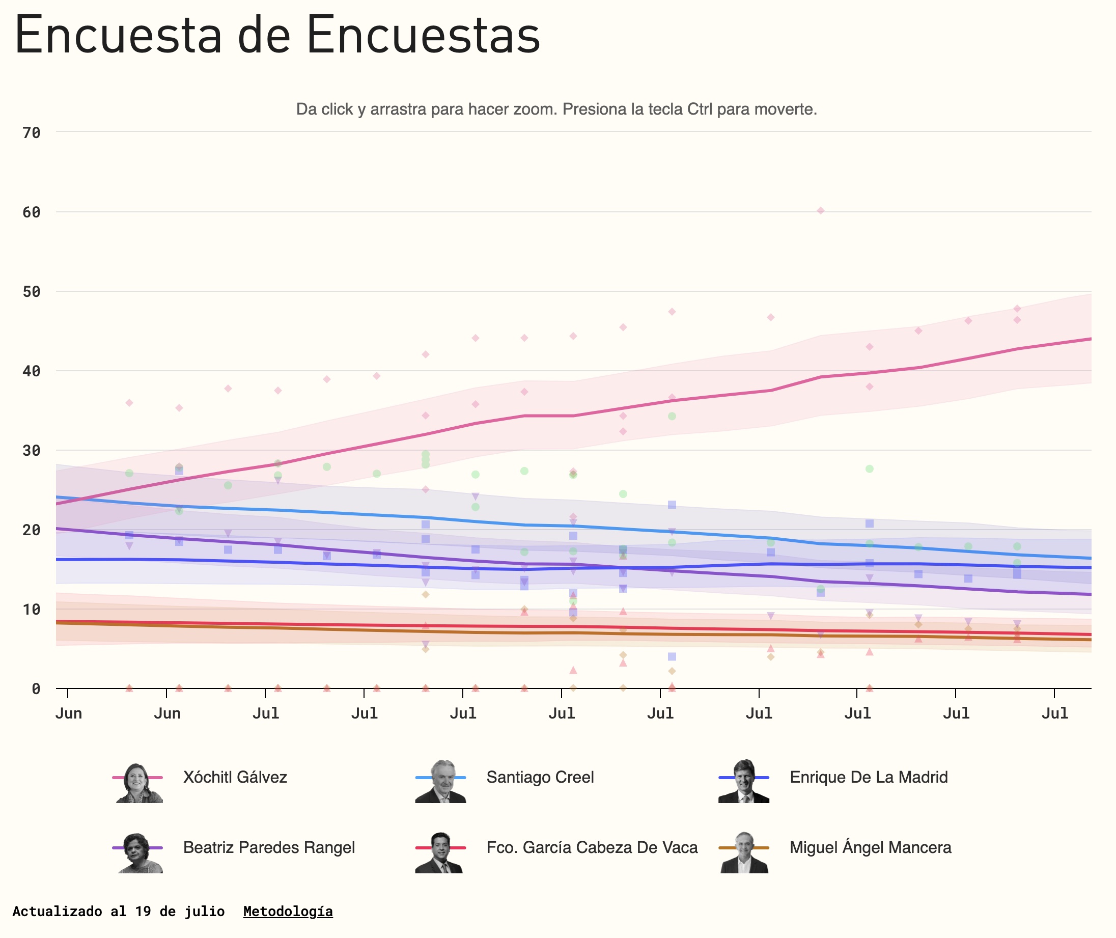 Por lo tanto, manténganse en sintonía mientras seguimos de cerca esta fascinante carrera presidencial, donde cada movimiento cuenta. Nuestra Encuesta de Encuestas será su ventana al corazón de la contienda política más grande en la historia de México.