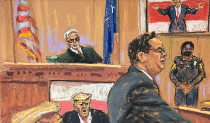“El acusado eligió a Michael Cohen como su mediador porque estaba dispuesto a mentir y hacer trampa en su nombre”, dijo el fiscal al jurado. Steinglass añadió que Trump eligió a Cohen “por las mismas cualidades” que los abogados de Trump “ahora instan a rechazar su testimonio por ello”.