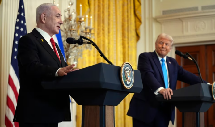La sugerencia de Trump se produjo en una conferencia de prensa en la Casa Blanca con el primer ministro israelí, Benjamin Netanyahu, quien sonrió varias veces mientras el presidente detallaba un plan para construir nuevos asentamientos para los palestinos fuera de la Franja de Gaza, y para que Estados Unidos asuma la “propiedad” dentro de una conversión del territorio devastado por la guerra en “la Riviera de Oriente Medio”.