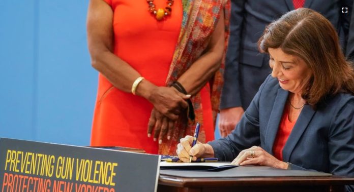 La gobernadora demócrata Kathy Hochul firmó la medida, que se encuentra entre otras 10 leyes relacionadas con el control de armas.