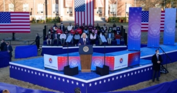 “Hoy venimos a Atlanta, la cuna de los derechos civiles, para dejar en claro lo que debe venir después de ese terrible día en que literalmente se puso una daga en la garganta de la democracia estadounidense”, dijo Biden, invocando el asedio del 6 de enero de 2021 al Capitolio de Estados Unidos por los partidarios del expresidente Donald Trump que intentaban anular la victoria de Biden en las elecciones de 2020.