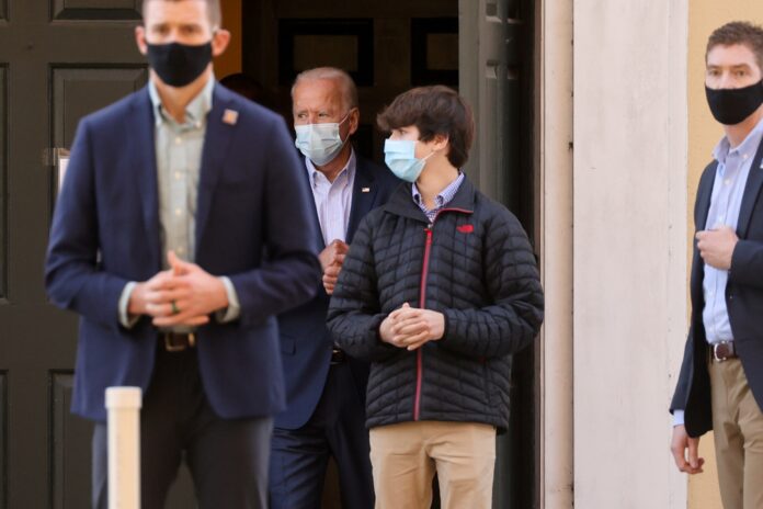 El presidente electo entró con su hija Ashley y su nieto Hunter, hijo del fallecido Beau, ex fiscal general de Delaware, el hijo mayor de Biden.