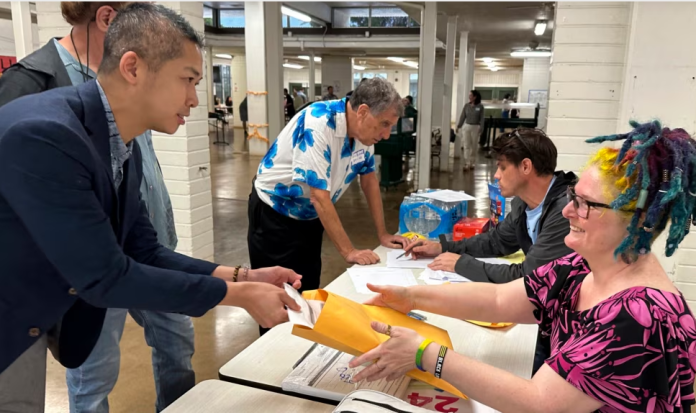 Los demócratas votaron el miércoles en comedores escolares, centros comunitarios y locales sindicales en todo el estado. Solo los miembros del partido que estuvieran registrados tenían derecho a voto, pero la formación facilitó la inscripción y el registro de votantes el mismo día en todos los puntos de votación.
