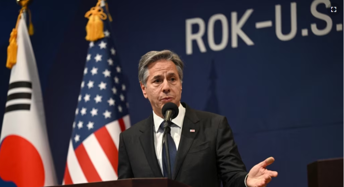La estrecha cooperación entre Rusia y Corea del Norte fue motivo de comentarios en una conferencia de prensa del jefe de la diplomacia estadounidense, Antony Blinken, en Seúl.