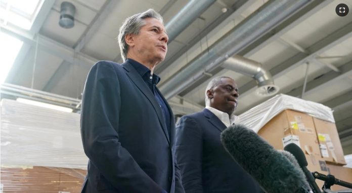 Austin y Blinken anunciaron un total de 713 millones de dólares en financiamiento militar exterior para Ucrania y 15 países aliados y socios. Unos 322 millones de dólares estaban reservados a Kiev.