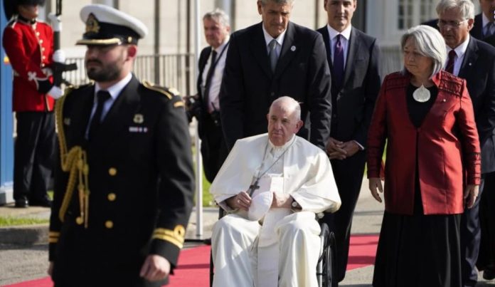 La reacción oficial del gobierno fue emitida a la llegada del pontífice a Quebec para reunirse con el primer ministro Justin Trudeau y la gobernadora general Mary Simon en la segunda etapa de la visita de una semana del papa a Canadá.