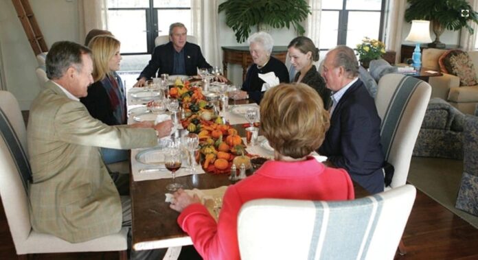 En 2007, también en Camp David, el presidente George W. Bush y su familia cenaron pavo, gelatina de arándanos, suflé de boniato amarillo batido, y de postre mousse de calabaza.
