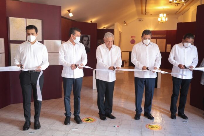 El presidente realizó el corte del listón inaugural de la exposición gráfica ‘Chiapas en la Memoria Histórica de México’ en el Teatro de la Ciudad Junchavín y la develación de la placa conmemorativa del Bicentenario de la Proclamación de la Independencia de Chiapas de la Corona Española.