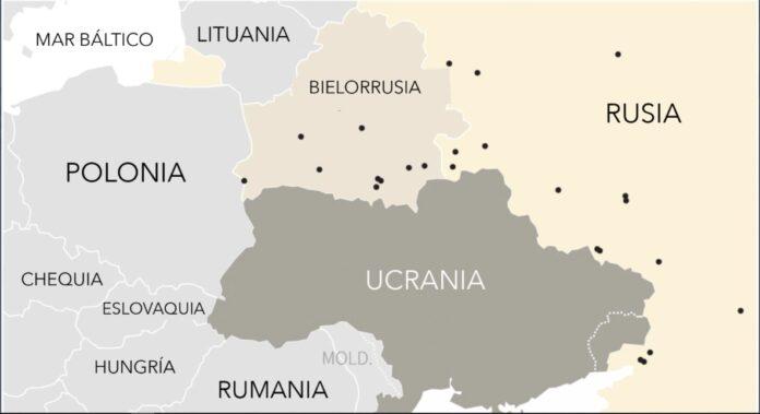 Funcionarios de Ucrania estiman que Rusia ha desplegado más de 100.000 soldados cerca de la frontera. En este mapa puedes identificar los puntos en donde se encuentran las tropas rusas.