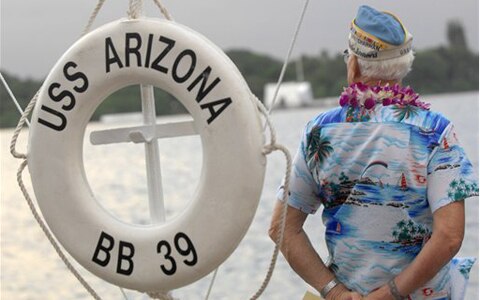 También durante la ceremonia, un destructor de misiles dirigidos de la Marina de Guerra estadounidense pasará al lado del acorazado USS Arizona mientras sus marineros saludan de pie a lo largo de las barandillas para rendir homenaje al buque de guerra hundido. El Arizona permanece en el mismo lugar donde fue hundido en 1941 tras ser impactado por dos bombas. Más de 900 marineros e infantes de Marina permanecen en su interior.
