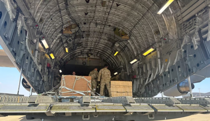 También el jueves, la nuevamente sobre el muelle flotante del ejército estadounidense frente a la costa de Gaza y hacia el territorio palestino, dijo el Pentágono. El muelle se volvió a unir a la costa el miércoles después de que las malas condiciones del mar obligaran a retirarlo temporalmente la semana pasada.