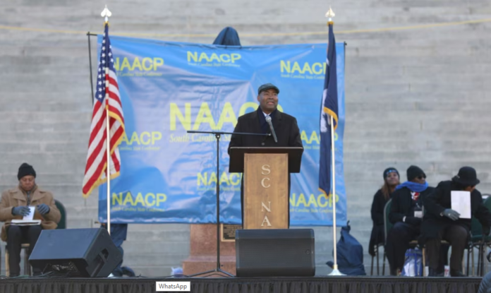En la frígida Columbia, Carolina del Sur, un mitin del Día de MLK en el Capitolio estatal entró en su 25º año con una multitud más pequeña, con cierta trepidación debido al cambio de poder que ocurría en Washington. El evento de Carolina del Sur comenzó en 2000 cuando decenas de miles de personas se reunieron para exigir que la bandera confederada fuera retirada de la cúpula del Capitolio.